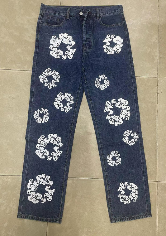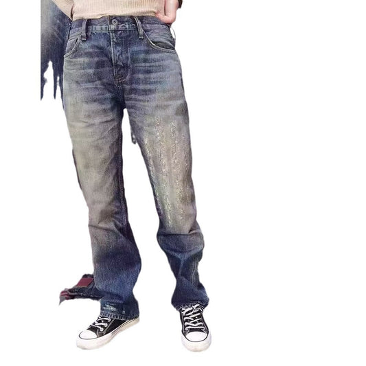 Men Trousers Individual Patched Pants Long Tight Fit Stacked Jeans For Mens Clothing